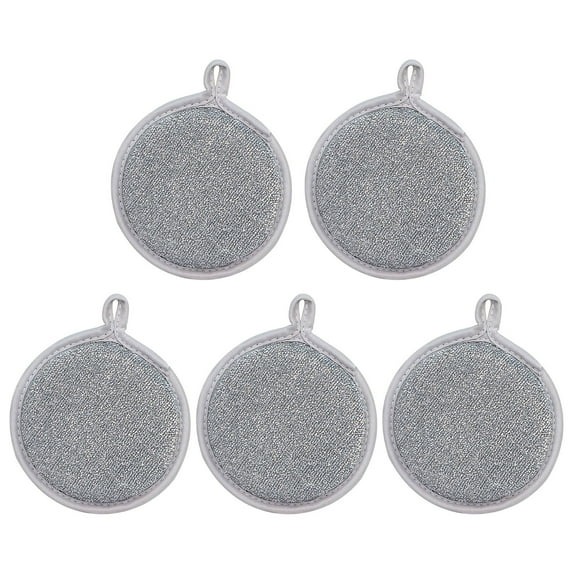 5 Pcs Round Double-sided Steel Wire Cleaning Sponge Block