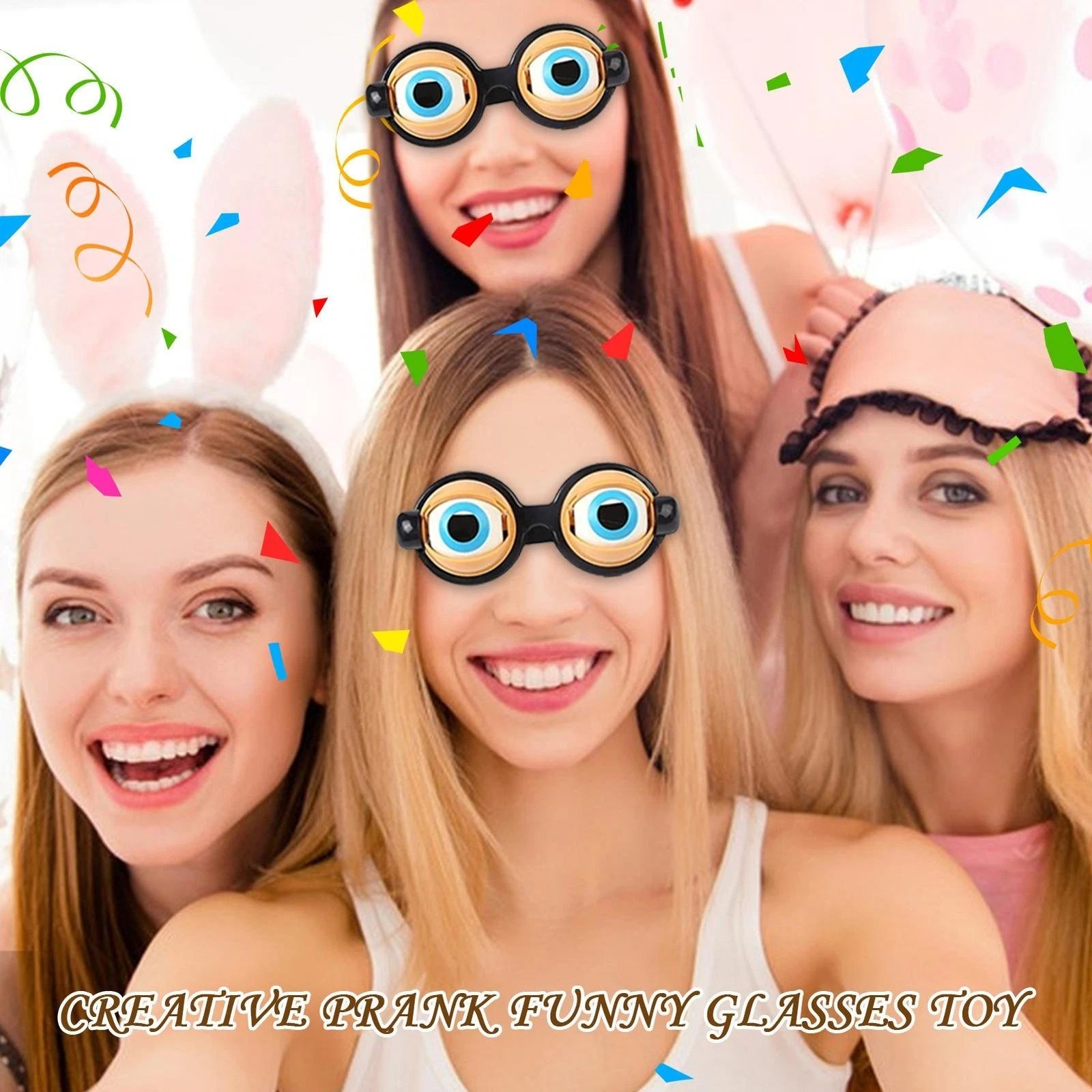 🤓Very fun to use. Plastic spring attached to the frame so the eye of the glasses will jump