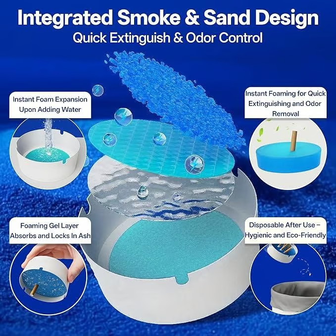 Simply add water, and the ashtray's ash will quickly solidify, ensuring stable performance.