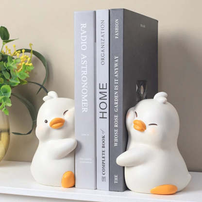 Kawaii Decor: Whether you're an avid reader, a student, or someone whoappreciates unique decor, these duck bookends seamlessly fit into any setting.They bring a touch of joy to your workspace, study area, or living room.Perfect Gift for Book Lovers: Searching for a thoughtful and unique gift? Look nofurther. The Adorable Duck Book Ends make a charming and practical present forbook enthusiasts, students, or anyone who appreciates the whimsy of well-crafted decor.Let the Ducks Guard Your Stories:Transform your bookshelf into a haven of charm with the Adorable Duck Book Ends.Whether you're organizing your favorite novels, cookbooks, or textbooks, theseducks are here to add a touch of whimsy to your literary adventures. Order yourset and let the ducks guard your stories in style!