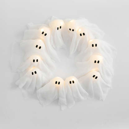👻12 Ghosts with LED Lights – Features 12 spooky white ghosts that glow eerily with built-in LED lights for the ultimate 12 LED Light-Up Halloween Ghost Wreath