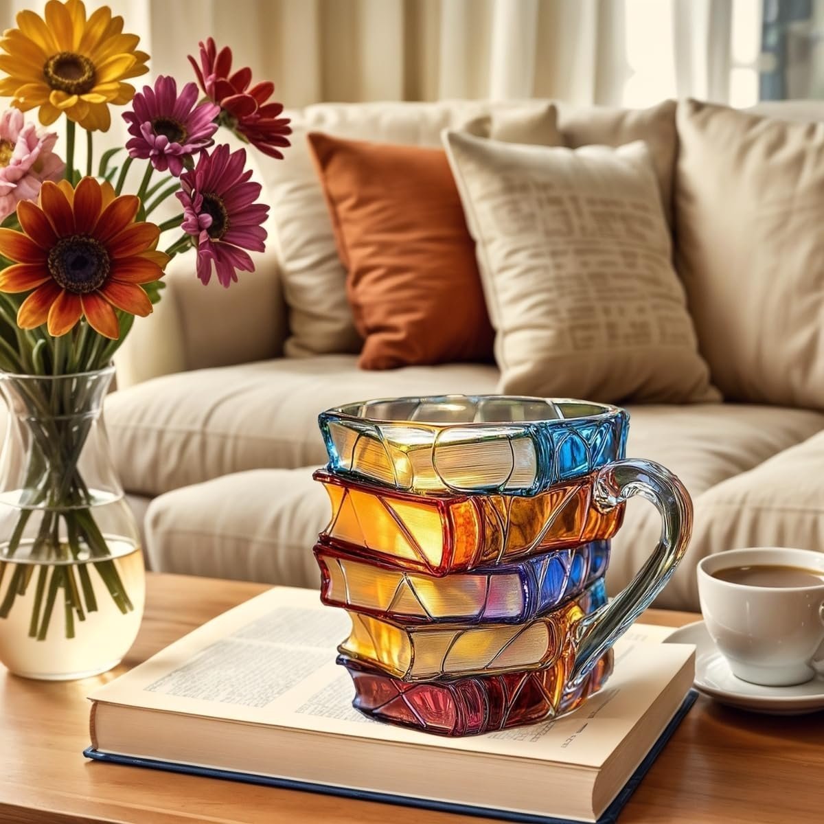 📚☕Bring your love of reading and art together with this gorgeous Painted Book Mug! Each mug is beautifully hand-painted with charming book-themed designs, making every sip a little more magical.