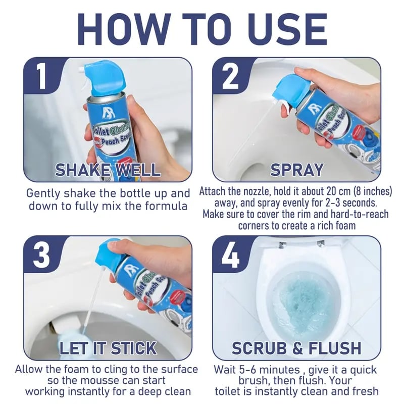 Tired of scrubbing endlessly to get rid of toilet stains? This toilet cleaning foam turns tedious bathroom chores into a breeze—tackling grime, eliminating odors, and leaving a delightful peach fragrance that refreshes your space!